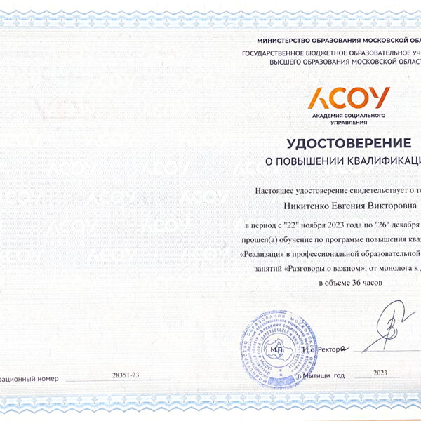 Курсы повышения квалификации